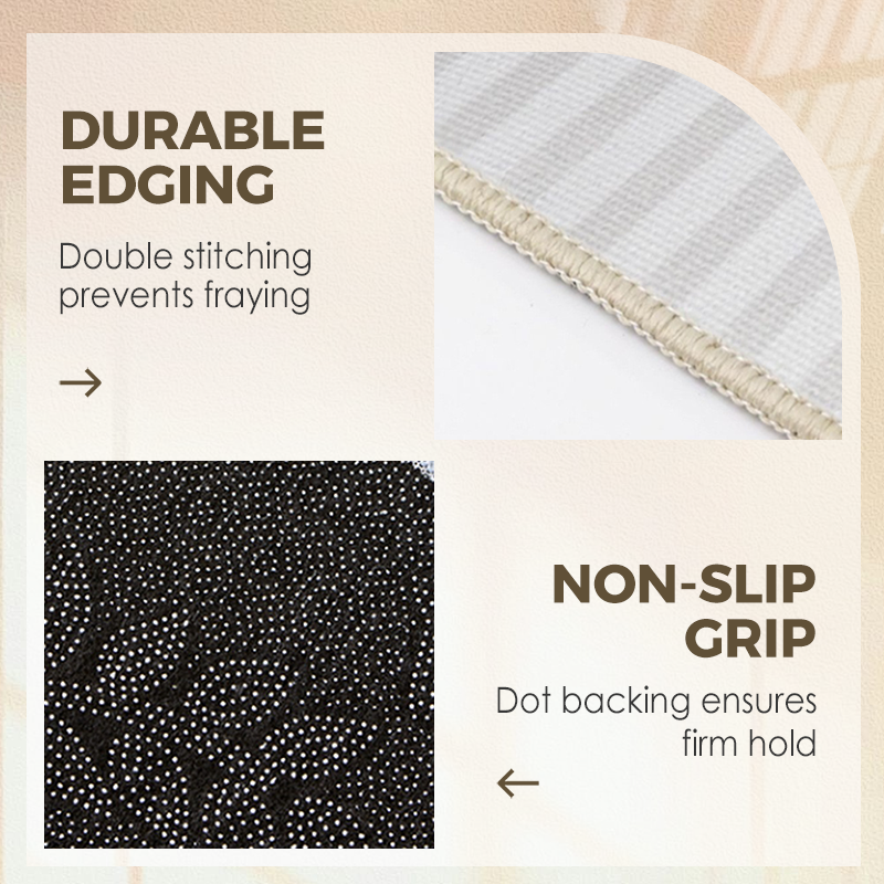 BORDES CON CIERRE DE PRECISIÓN:Cada alfombra cuenta con bordes duraderos con doble costura para evitar que se deshilachen, lo que garantiza un rendimiento duradero y una apariencia impecable incluso después de lavados frecuentes y uso diario.