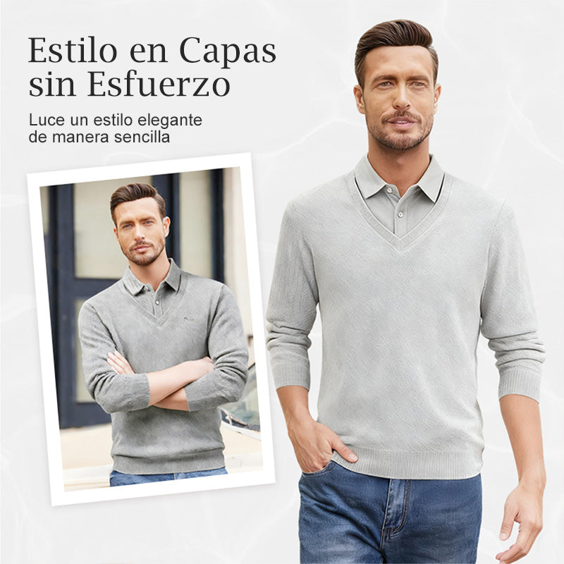 Suéter Forrado para Hombre con Efecto de Dos Piezas