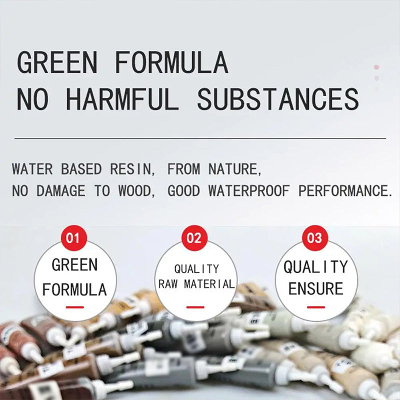 APLICACIÓN AMIGABLE: Proceso de aplicación simple lo hace accesible para usuarios de varios niveles de habilidad. Ideal para llenar y reparar huecos, grietas y arañazos en puertas de madera, muebles, escaleras, suelos e incluso para toques en artículos decorativos de cuero falso.