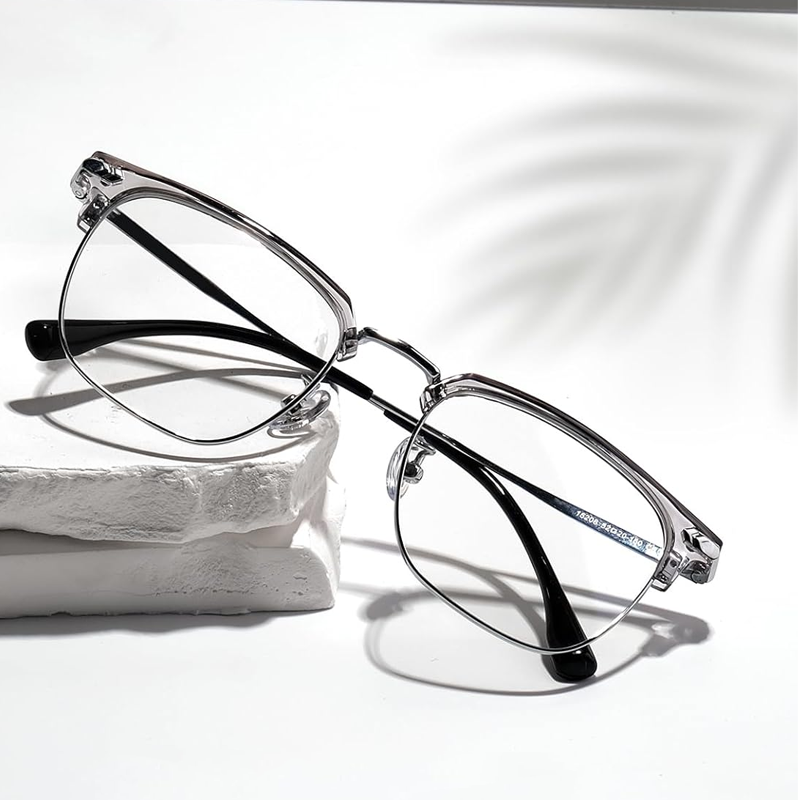 DISEÑO ESTILIZADO Y VERSÁTIL: Disponibles en varios colores como montura gris transparente, montura negra brillante con dorado y montura negra brillante con plateado, estas gafas con media montura combinan estilo y funcionalidad. Su diseño moderno y elegante las hace ideales para diversas ocasiones, desde salidas casuales hasta reuniones de negocios, añadiendo un toque de estilo a tu look.