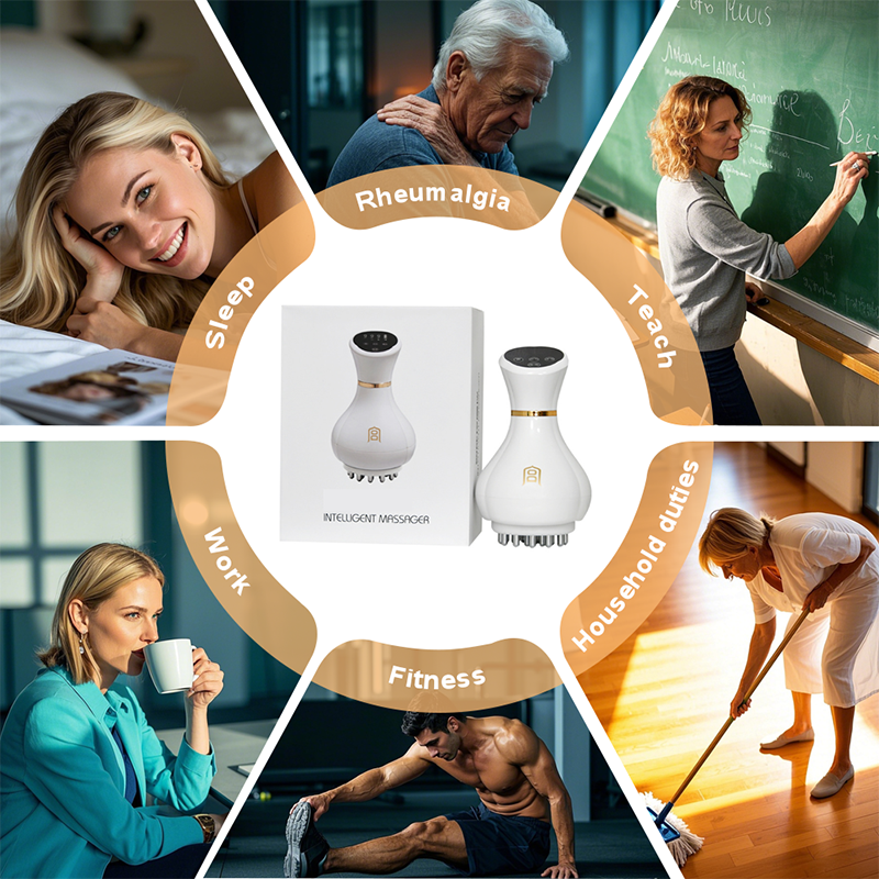 AJUSTE VERSÁTIL DE 9 VELOCIDADES: Equipado con nueve niveles ajustables para masaje de vibración, terapia de pulso de microcorriente y compresa de calor de luz roja calmante, lo que le permite personalizar la intensidad del masaje. La clara pantalla de visualización hace que los ajustes sean sencillos e intuitivos.