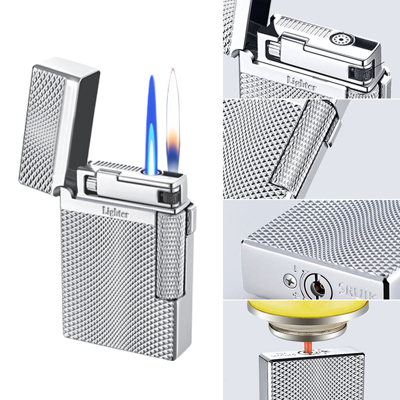 DOBLE LLAMA A PRUEBA DE VIENTO - Puedes elegir entre una llama normal y suave o una llama azul de alta presión para un efecto más potente. Se caracteriza por su encendido rápido y confiable. Después de encender la llama normal, puedes cambiar a la llama azul con solo presionar el interruptor.