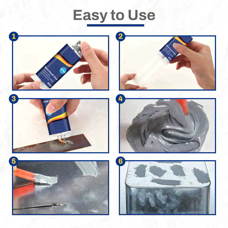 El pegamento de reparación de metales multiuso proporciona una reparación potente y duradera para todas las superficies metálicas.