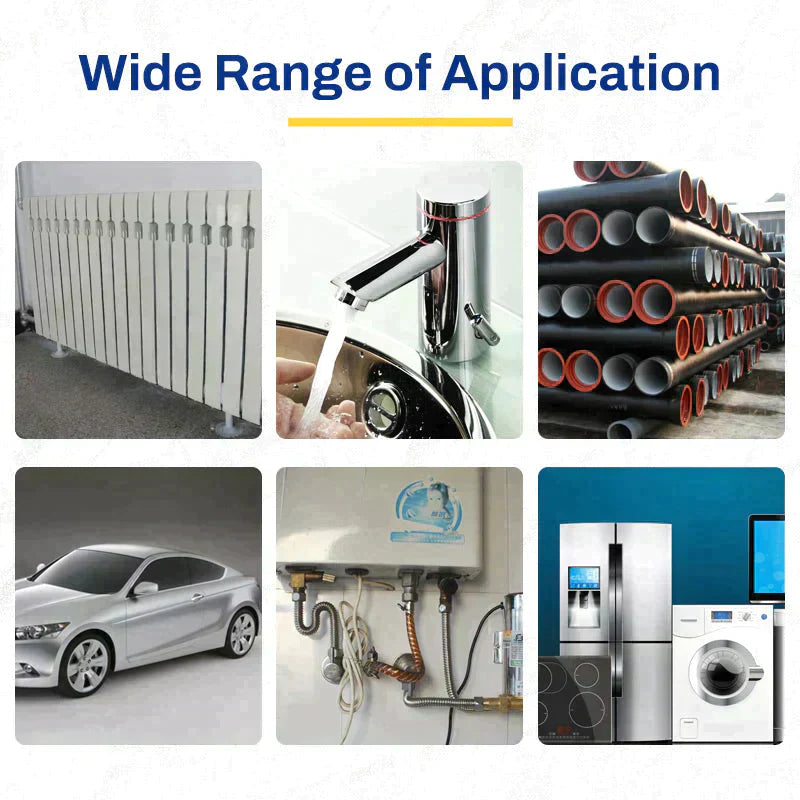 Resistente a las altas y bajas temperaturas, adecuado para reparar todas las superficies metálicas, acero, bomba, tanque de agua, tanque de combustible, motor, electrodomésticos, máquina, etc.