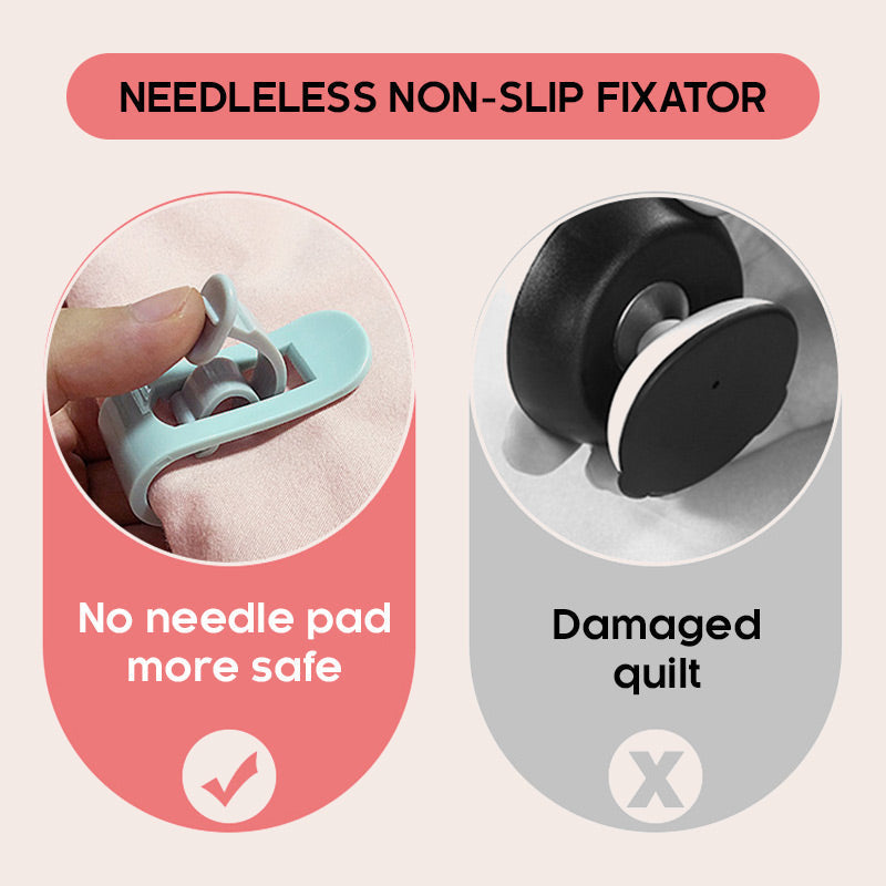 De Naaldloze Antislip Quilt Fixator heeft een nieuw ontwerp en een schattige vorm. Geen speldenkussen, veiliger, geen schade aan de quilt, stabiel en niet gemakkelijk te verschuiven, klein van formaat, licht, glad en zal mensen niet verwonden.