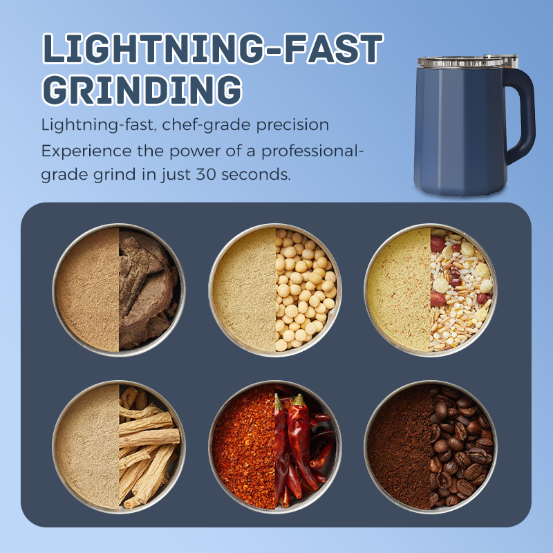 LIGHTNING-FAST, CHEF-GRADE PRECISION - Experience the power of a professional-grade grind in just 30 seconds. Our 8-blade stainless steel system and robust pure copper motor work in harmony, transforming even the toughest ingredients into fine, consistent powder.