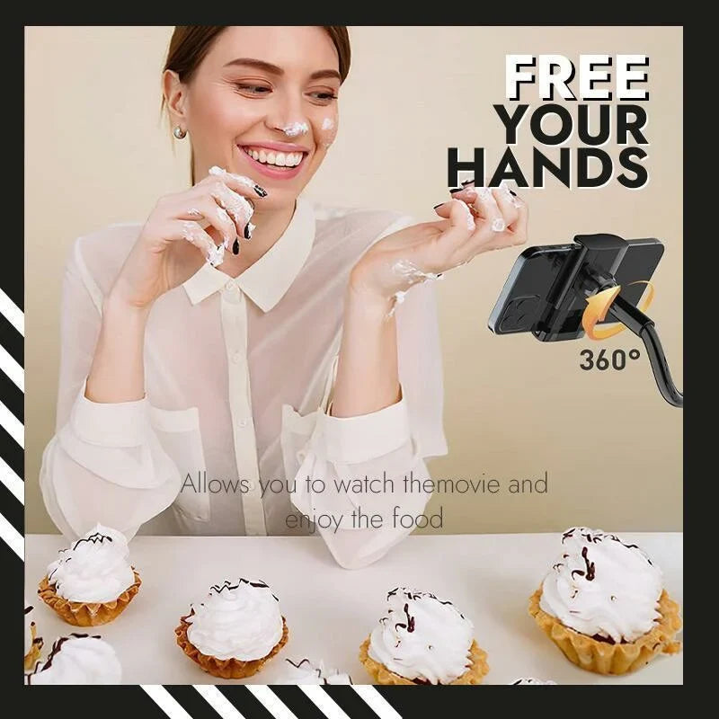 La pinza de este soporte para teléfono se puede ajustar 360 grados, por lo que podrás colocar fácilmente tu móvil en el ángulo de visión más cómodo. ¡Cómodo y flexible!