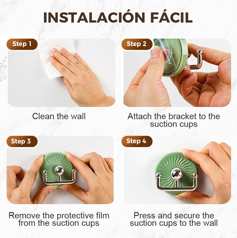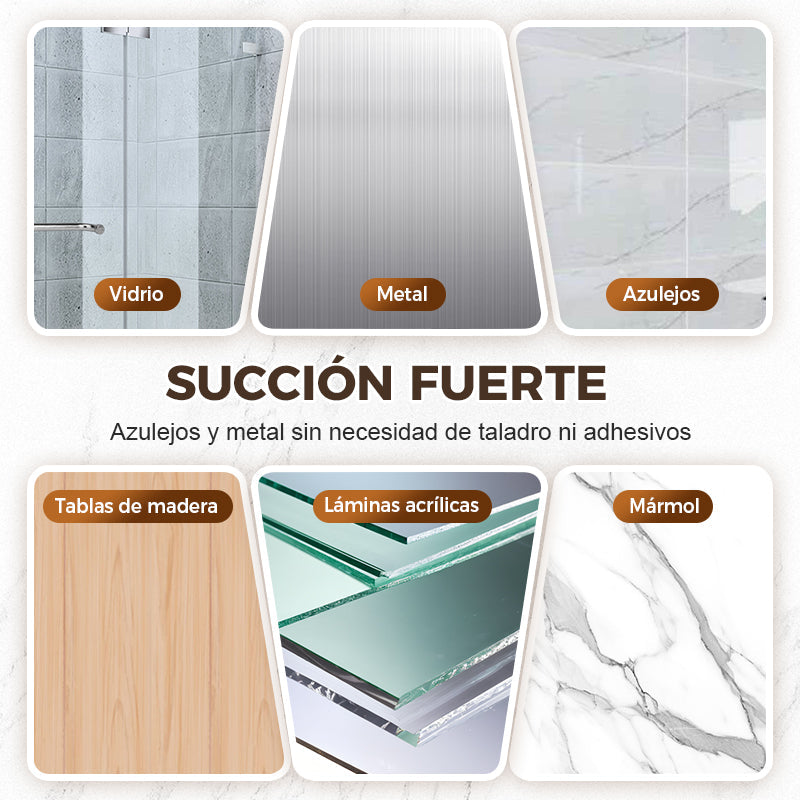 SUCCIÓN FUERTE – Se adhiere de manera segura a superficies lisas como vidrio, azulejos y metal sin necesidad de taladro ni adhesivos.