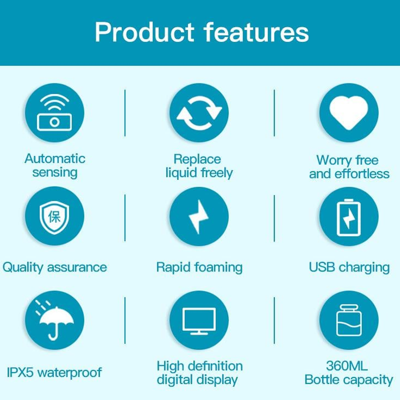 GRAN CAPACIDAD DE 360ML Y DISEÑO RECARGABLE POR USB: La gran capacidad de 360ML garantiza menos recambios, mientras que el diseño recargable por USB elimina la necesidad de pilas desechables, ofreciendo un uso ecológico y rentable durante periodos más largos.