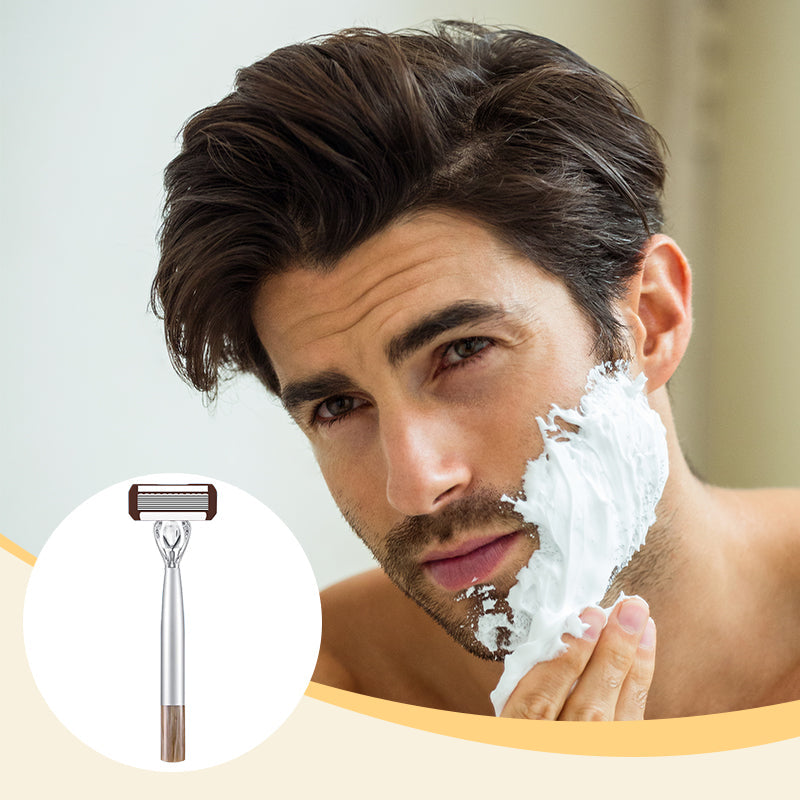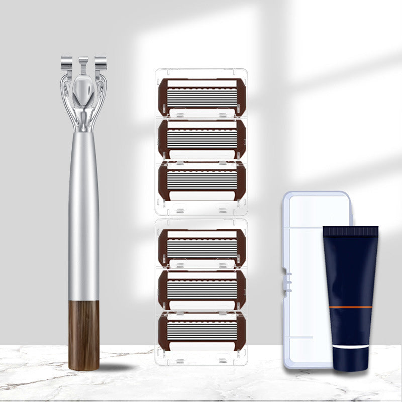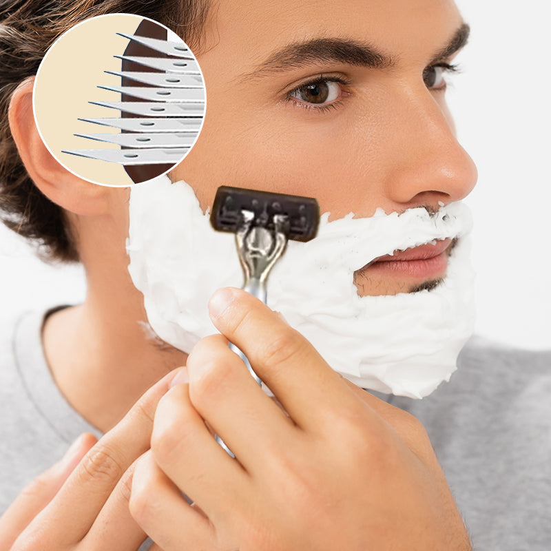 El paquete incluye: 1* Mango de maquinilla + 6* Cabezales de cuchilla + 1* Caja de almacenamiento + 1* Crema de afeitar de 30 ml