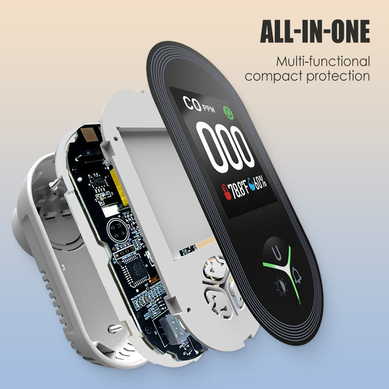 PROTECCIÓN TODO EN UNO COMPACTA - Este dispositivo multifuncional integra varias funciones de seguridad en una sola unidad, incluyendo la detección de monóxido de carbono, temperatura y humedad, así como la detección opcional de gas inflamable. A pesar de su tamaño compacto, ofrece una funcionalidad potente, brindando protección para tu hogar las 24 horas del día para tu tranquilidad.