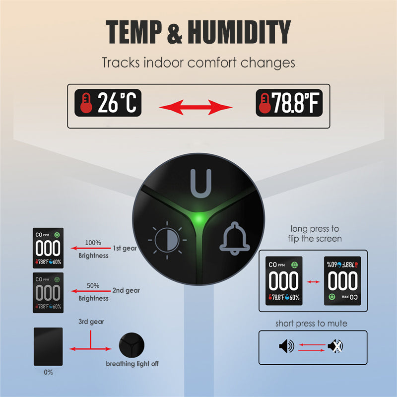 DETECCIÓN DE MONÓXIDO DE CARBONO EN TIEMPO REAL - Equipado con sensores avanzados, este dispositivo ofrece una medición precisa y en tiempo real de la concentración de monóxido de carbono. Sus múltiples niveles de alerta con luces indicadoras y alarmas sonoras garantizan que tú y tu familia estén protegidos en todo momento de peligros invisibles.