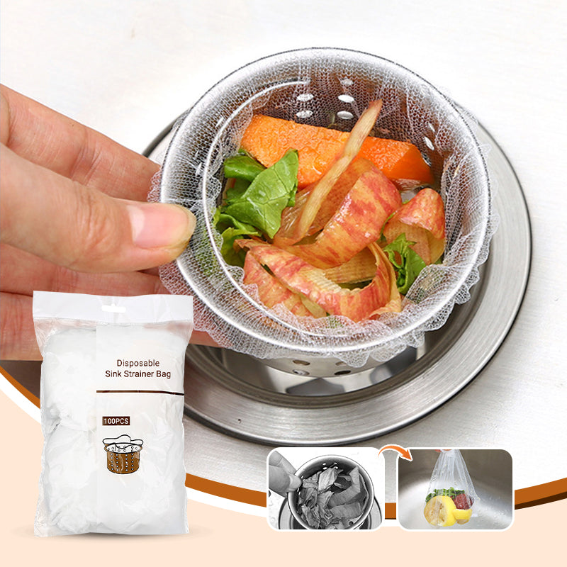 GENEROSO PAQUETE DE 100 UNIDADES PARA USO DIARIO: El paquete incluye 100 bolsas desechables para coladores de fregadero, proporcionando un suministro duradero para uso diario y reemplazo regular. Mantén tu cocina limpia y los desagües libres de obstrucciones.