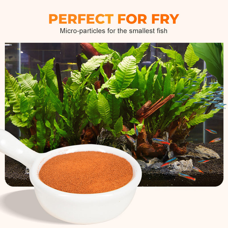 TAMAÑO DE MICROPARTÍCULAS: Tamaño perfecto para peces pequeños, alevines e invertebrados. Los diminutos gránulos son fáciles de consumir incluso para las bocas más pequeñas, lo que garantiza que todas sus mascotas acuáticas reciban una nutrición adecuada y fácilmente digerible.