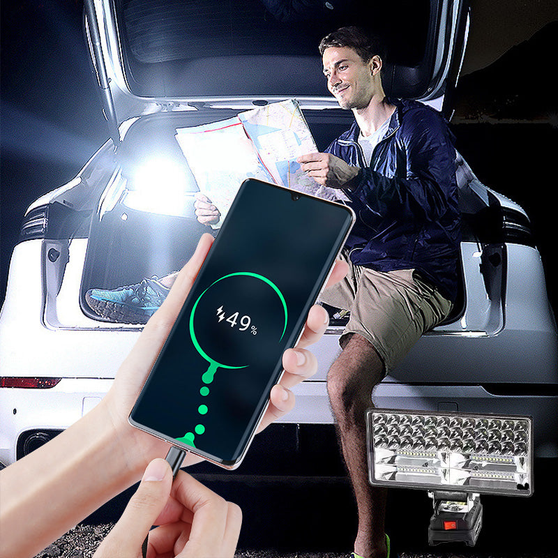 PUERTOS DE CARGA USB DUALES: Manténgase conectado con dos puertos USB que le permiten cargar sus dispositivos mientras viaja. Ya sea que necesite cargar su teléfono, tableta u otros dispositivos electrónicos, esta luz de trabajo le garantiza que nunca se quedará a oscuras. Disfrute de la comodidad de tener una fuente de energía confiable mientras trabaja o explora al aire libre.