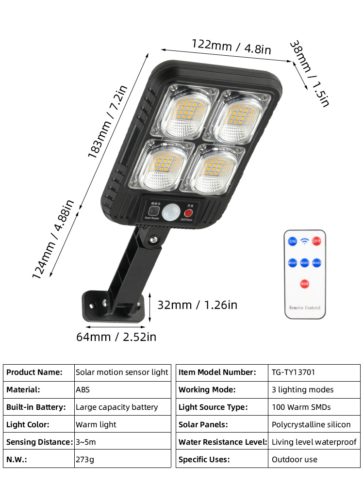 - Paquete incluido: 1 x Lámparas LED solares de 800W, control remoto, montaje en pared, tornillos